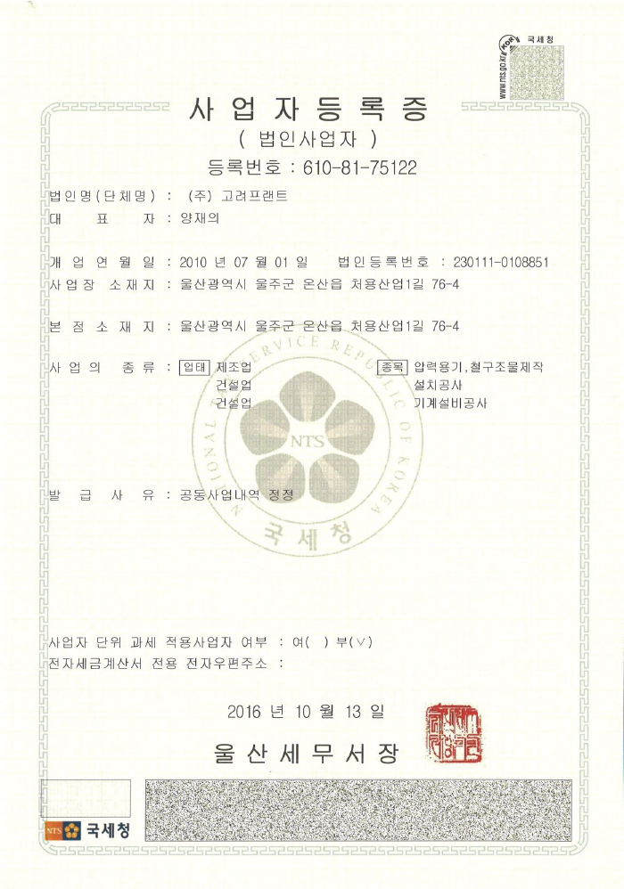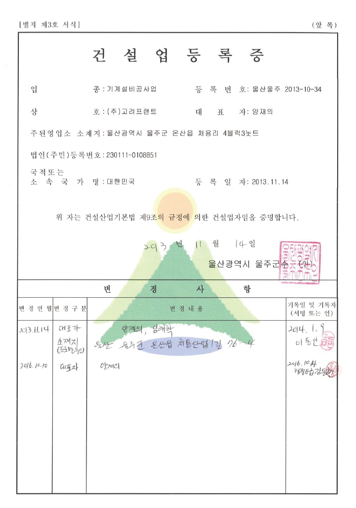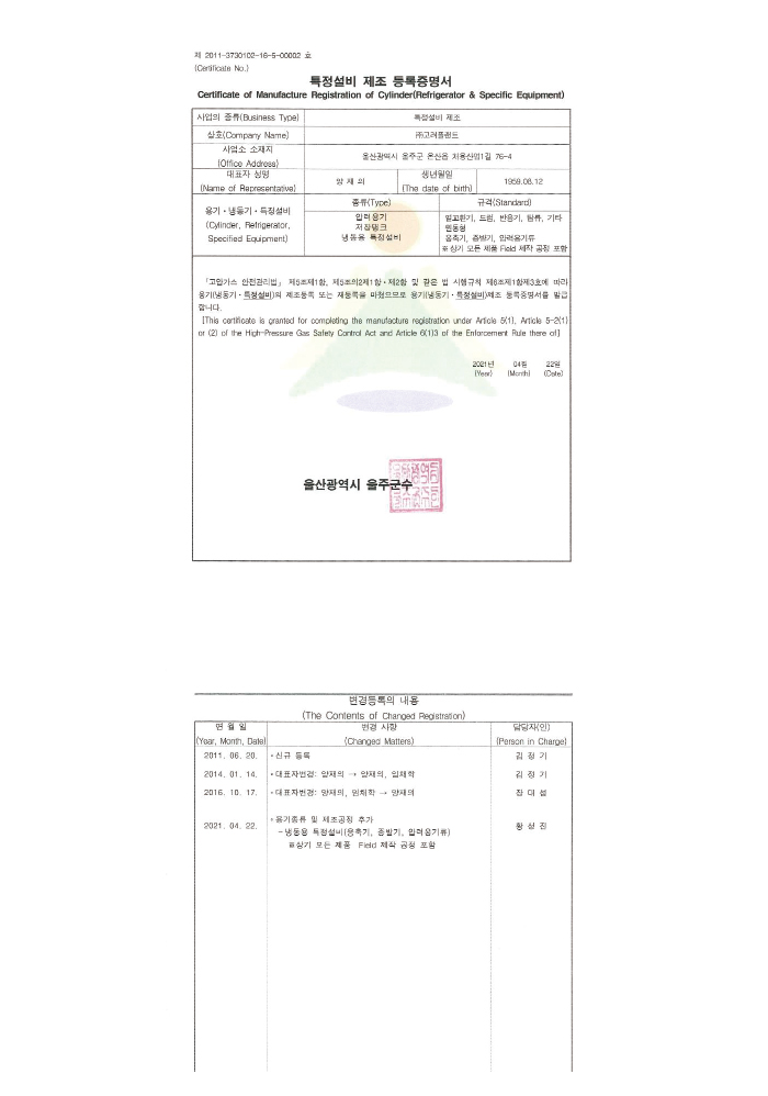 ƯÁ¤¼³ºñ Á¦Á¶ µî·ÏÁõ¸í¼